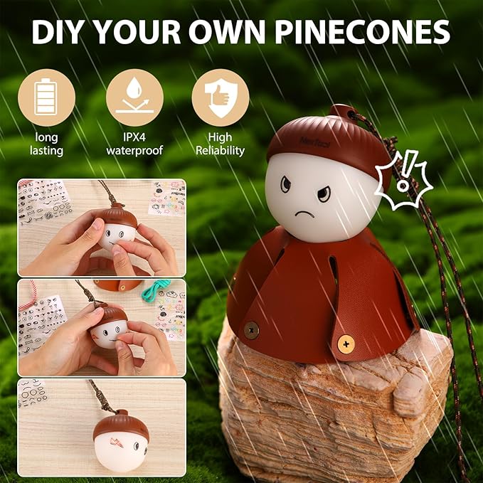 - 【Customizable & Playful Design】: With charming acorn-like shape , you can DIY your own acorn light with stickers, paint brush, or beautiful strings to outstand your style, or you can take , hang or attach the light anywhere you want with the adjustable string length.