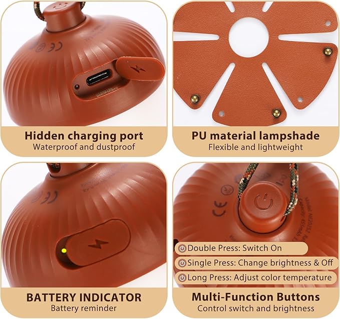 - 【Long-lasting & USB Rechargeable】: The LED tent light operates upto 3~21 hours as per different brightness settings. Rechargeable tent lights can be used in chanrging with a power bank connected.