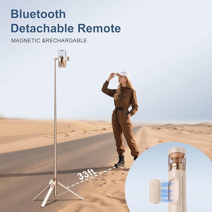 - 【 Anti-Pinch & Wide Compatibility】This selfie stick tripod with remote features a built-in magnetic remote (rechargeable via USB-C) for quick detachment and secure click-free control. The phone mount adjusts from 2.36"-3.66" (60-93mm) to fit 4-7" smartphones (excludes foldables/tablets), with anti-pinch design for one-handed, drop-proof installation.