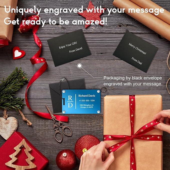 - METAL LUGGAGE TAGS: Heavy duty, double-layer aluminum construction for durability.