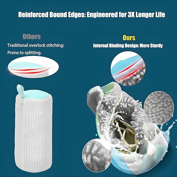 - 🛡️ Heavy-Duty Universal Shoe Guard: Triple-layer bound seams reinforce stress points, supporting boots/loafers up to 5 lbs—outlasts standard lockstitch laundry bag for shoes by 2X.