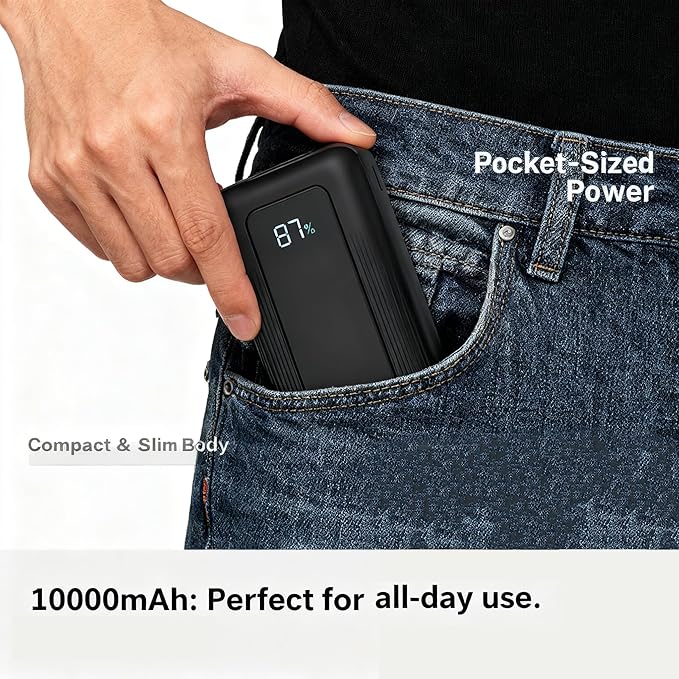 - Massive Travel Power: A compact yet mighty 10,000mAh power bank delivers 4.5 full charges for an iPhone 16/15 and 3.8 charges for a Samsung S25/S24, perfect for long trips.