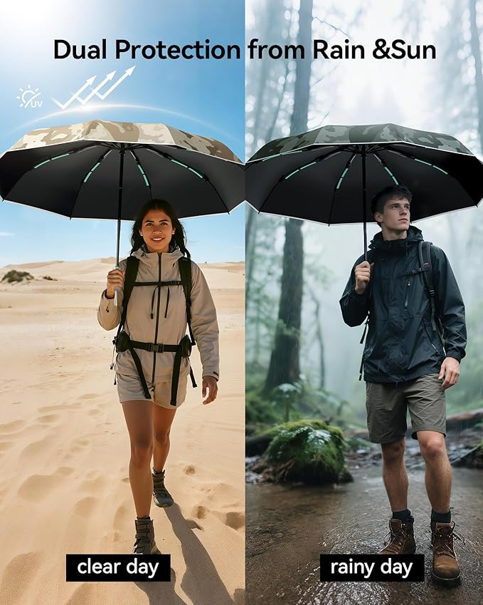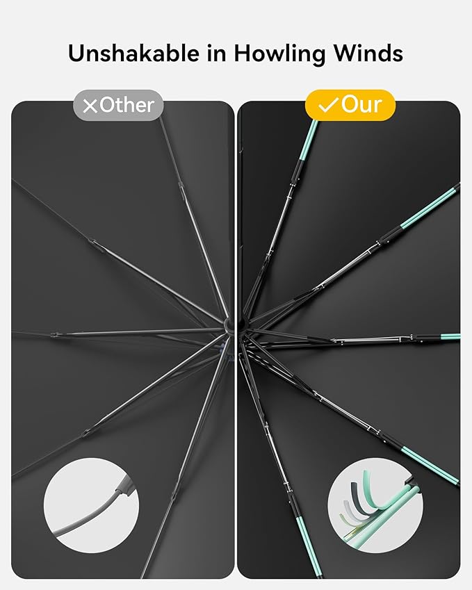 - HEAVY-DUTY WINDPROOF DESIGN: The windproof heavy duty umbrella is made of military-grade fabric and features an industrial-strength fiberglass frame, providing monsoon-level protection. Its strong wind-resistant structure design can withstand gusts of 45 miles per hour and break from the recoil frame, effectively resisting RAIN and strong wind weather and preventing the umbrella surface from flipping over