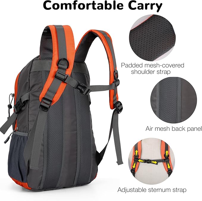 25L Small Hiking Backpack Daypack for Men Women, Waterproof Outdoor Backpack with Chest Strap for Camping, Orange