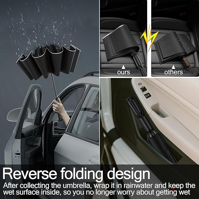 - DRYTECH REVERSE CLOSE SYSTEM . Wet Surface Folds Inside Automatically - Zero Drips on Clothes, Car Seats or Floors. Perfect for SUVs and Work Uniforms.
