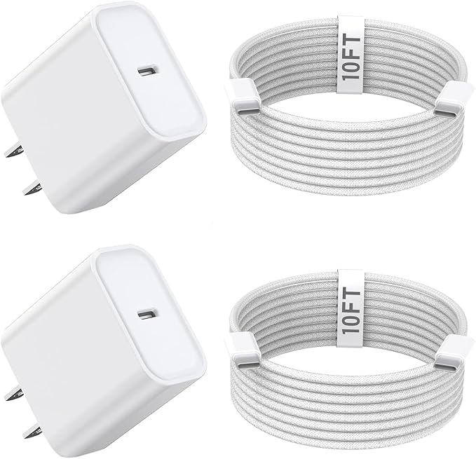- [Exclusive Warranty & Service] 2pack 20W Quick Charging USB C charger blocks and 2pack extra long 10FT USB-C woven cables.If you have any question, please don't hesitate to contact us