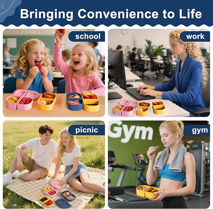 - 【COMPACT & PORTABLE】Stackable fridge & microwave safe - perfect for meal prep and on-the-go! The adorable blue, pink, and yellow colors make these ideal for packing toddlers' snacks (like fruits, nuts, or pasta) for daycare. They're also great for your camping trips or beach days - add a splash of color to your life!