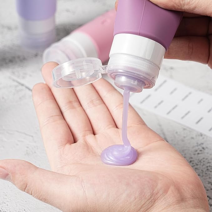 - 【Convenience】Save space in your luggage with carry-on approved bottles for shampoo, conditioner, lotion, sunscreen, hair products and more. These refillable bottles are made of soft and squeezable body with wide mouth for easy refill and cleaning. Being packed with a zippered clear toiletry bag, saving space,easy to carry.