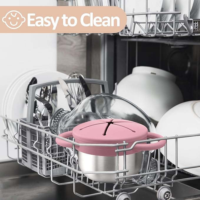 - Easy to Clean&Built to Last - Snack containers crafted from premium 304 stainless steel and food-grade silicone,each cup holds about 9 oz , these snack catchers are freezer-safe. Toddler snack containers are stain-proof, and dishwasher safe. Built to handle drops, throws, and every snack-happy moment life brings