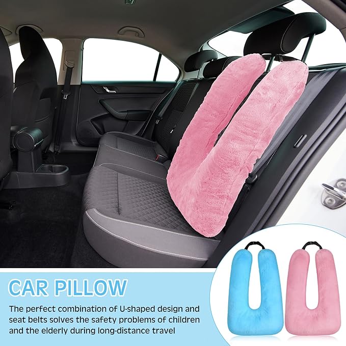 - Convenient and Easy to Use: our kids car pillows for sleeping feature a user friendly U shaped design that fits comfortably around your upper body, providing optimal support and avoiding strain or discomfort; Additionally, they come with a belt, ensuring that the pillow stays securely in the back seat even during sudden movements or road bumps; The pillows are easy to use, allowing you to relax and enjoy your trip