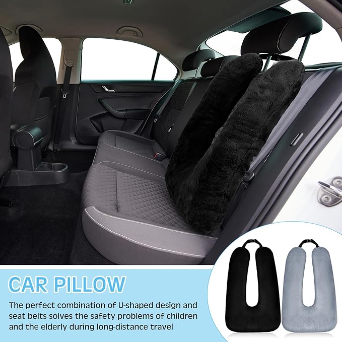 - Material and Durability: our car travel pillow is crafted with imitation rabbit fur plush and filled with quality PP cotton, not easy to shed or fade, which provides ideal support and retains its shape even after extended use; The durable material ensures long lasting comfort, making it a practical investment for frequent travelers; Additionally, the pillows come in 2 elegant color options, gray and black, adding a touch of style to your car interior