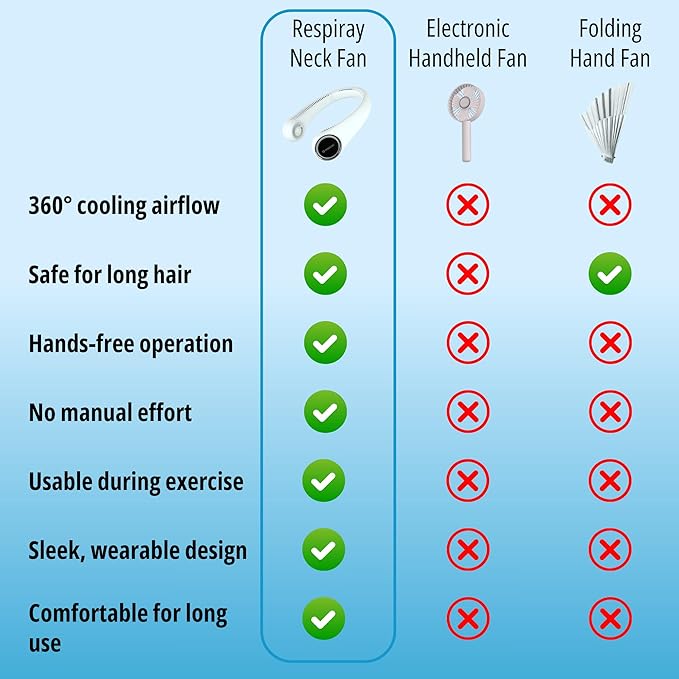 - Built by Respiray – Trusted Wearable Innovators. From the creators of Wear A+, this wearable air conditioner stands above other portable neck fans that blow cold air. Backed by design, performance, and real-world purpose.