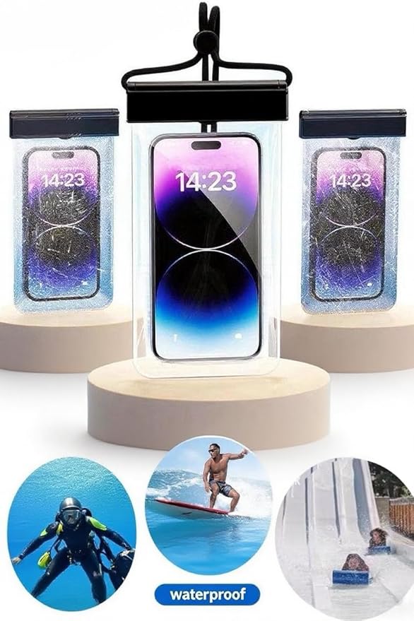 1PCS Waterproof Phone Case - Universal Fit for iPhone 14/13/12 & Android Phones - Submersible Up to 100ft for Kayaking, Fishing, Rain,etc.(Black/White/Pink) (Black)