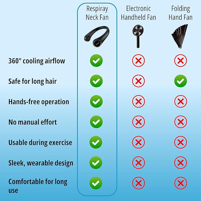 - Built by Respiray – Trusted Wearable Innovators. From the creators of Wear A+, this wearable air conditioner stands above other portable neck fans that blow cold air. Backed by design, performance, and real-world purpose.