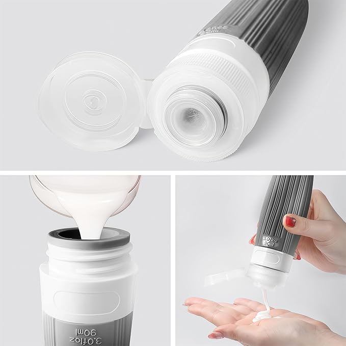 - 【LEAK-RESISTANT TRAVEL BOTTLE】 It features a three-layer leak-proof design that prevents liquid from leaking or spilling, ensuring a secure seal to protect your luggage and clothing from mess. Additionally, it allows you to easily squeeze out every last drop
