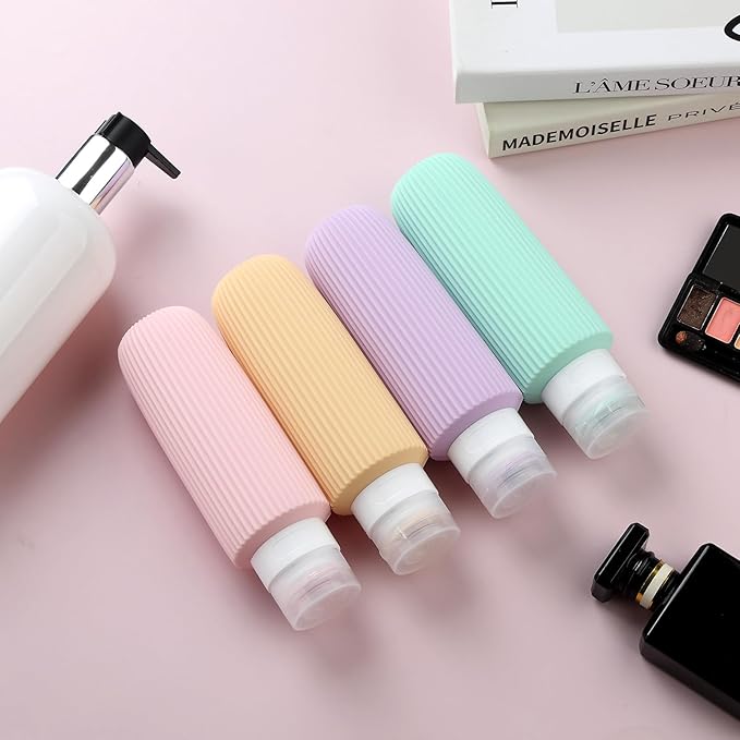 - TSA carry on approval: 4 pack 3 oz silicone travel bottles, very suitable for shampoo, conditioner, shower gel, lotion, hand sanitizer and shower gel. It is equipped with a high-quality zipper transparent wash bag, which saves space and allows you to travel long distance freely like a professional.