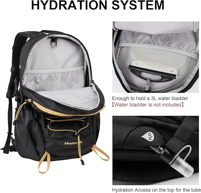 - 【Spacious And Organized Storage Space】: With a 30L capacity for 1-2 day hike or 3 day trip, our travel backpack features a multi-compartment design including one main roomy compartment with a interior sleeve for hydration bladder, one anti-theft classification compartment with multiple layers and key clip, one front pocket and 2 side pockets.