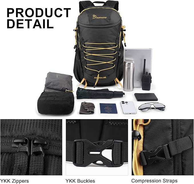 MOUNTAINTOP Hiking Backpack,30L Camping Backpack, Men Women Hiking Daypack Lightweight Travel Backpack for Climbing(Black)