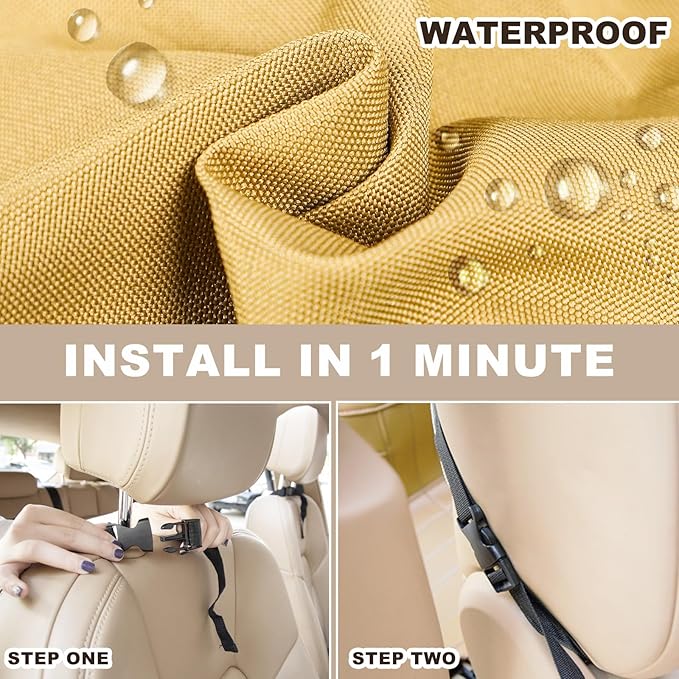 - Full Protection:This waterproof seat back protector 24"*16.3", is designed to cover the full back of your front seats from unwanted mud, stains, and scratches. Ideal for those with kids and pets in back seats