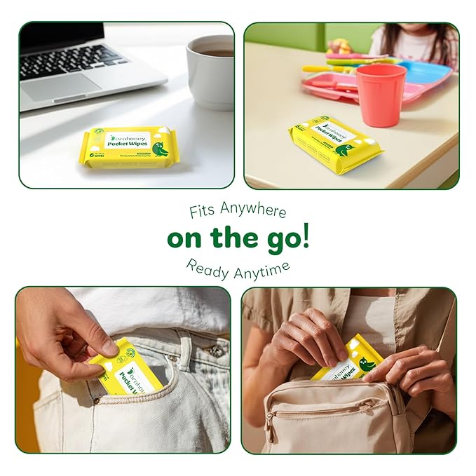 - Each pack contains 6 wipes, our wipes are just enough for short trips without taking up too much space.