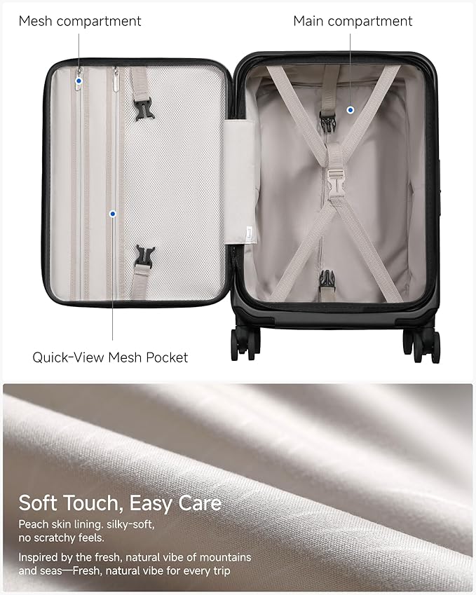 - 【A Thoughtful Journey Ahead】Comes eco-friendly gift box-ready with a protective dust cover and easy guide. This expandable carry on luggage features a soft peach skin interior that protects clothes from snags — a complete package that makes gift-giving easy.