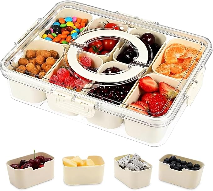 - Multi-Purpose Food Storage Solution: Great for storing and serving appetizers, deli meats, salad toppings, sliced fruits and veggies, taco fillings, dips and sauces, nuts, berries, sushi, dumplings, fries, cookies, and more. Your ultimate all-in-one food prep and serving tray