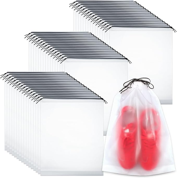 50 Pack Shoe Bags for Travel, 15.7" x 11.8" Large Clear Travel Shoe Bag Vacation Essentials Cruise Essentials Portable Drawstring Packing for Men & Women