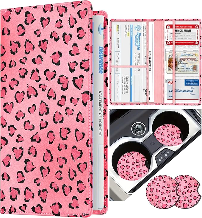 - Combination set: The combination package includes the car registration and insurance holder along with a matching car coaster,making for an eye-catching set. This not only serves a practical purpose but also enhances the aesthetic appeal