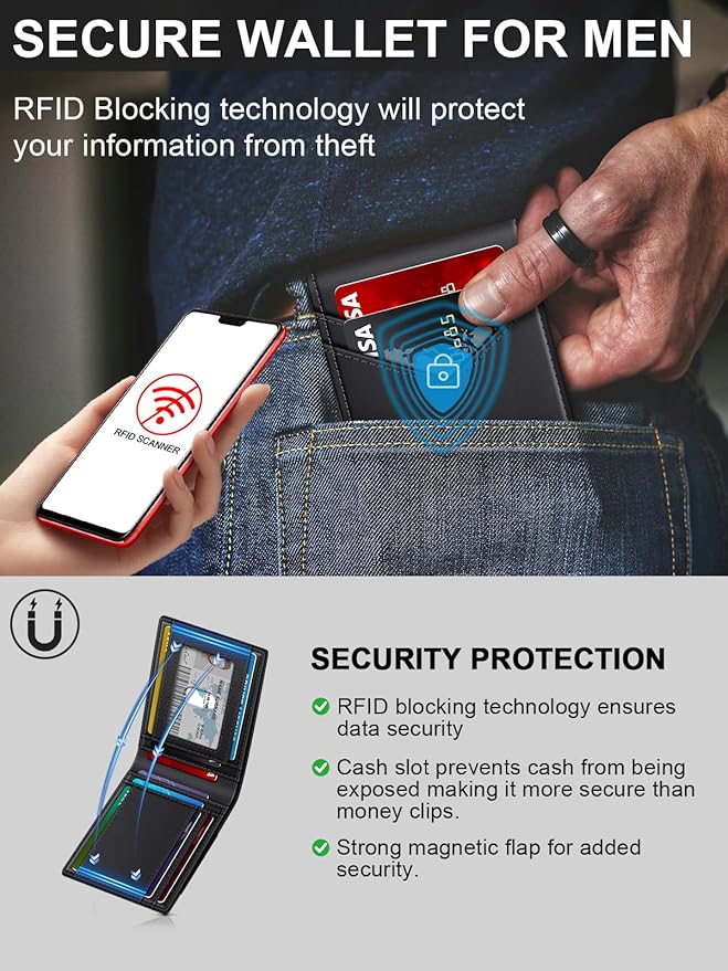 - MAGNETIC CLOSURE: SEMORID minimalist wallet for men features a convenient magnetic closure, allowing easy access to your essentials while keeping them secure.