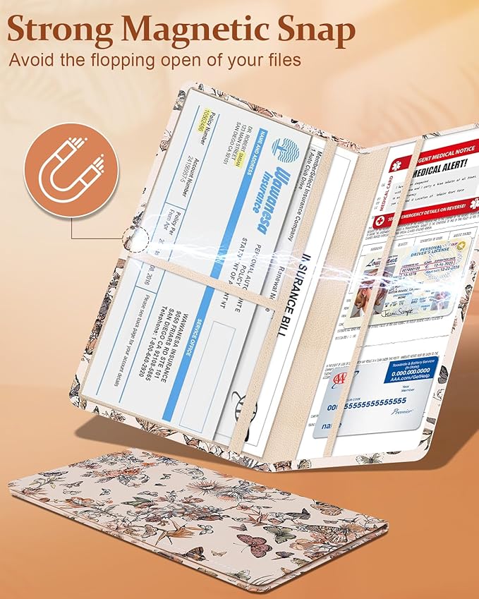 - Large Capacity Design: This car registration and insurance holder boasts a large capacity design,can store vehicle registration,insurance,driver's license,business cards,receipts,service records,emergency contact cards,etc
