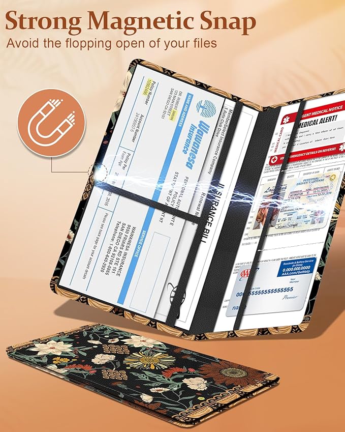- Large Capacity Design: This car registration and insurance holder boasts a large capacity design,can store vehicle registration,insurance,driver's license,business cards,receipts,service records,emergency contact cards,etc