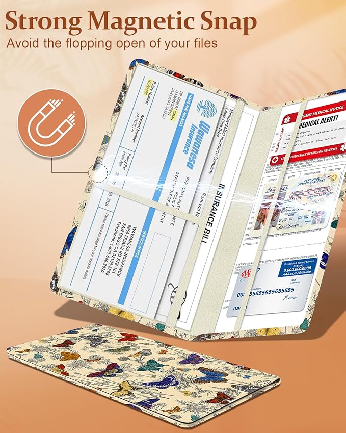 - Large Capacity Design: This car registration and insurance holder boasts a large capacity design,can store vehicle registration,insurance,driver's license,business cards,receipts,service records,emergency contact cards,etc