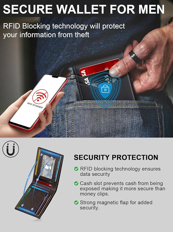 - ULTRA-THIN POCKET WALLET: This rfid wallet for men measures 4.45 x 3.15 x 0.6” and can hold up to 17 cards, fitting perfectly into your front pocket. Its compact design makes it ideal for everyday carry and an excellent travel wallet.