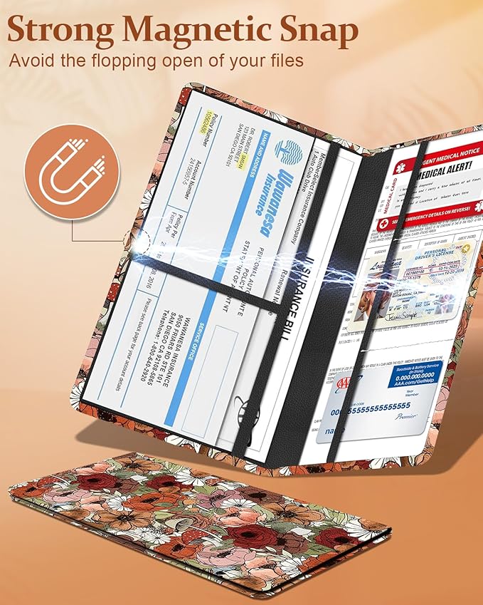 - Large Capacity Design: This car registration and insurance holder boasts a large capacity design,can store vehicle registration,insurance,driver's license,business cards,receipts,service records,emergency contact cards,etc