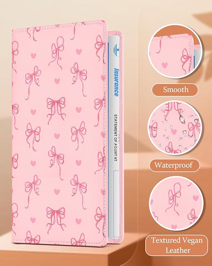 Slohif Car Registration and Insurance Card Holder - Bow Vehicle Glove Box Organizer Women with Magnetic Shut Leather Automobile License Holders Coasters Auto Accessories Case for Document