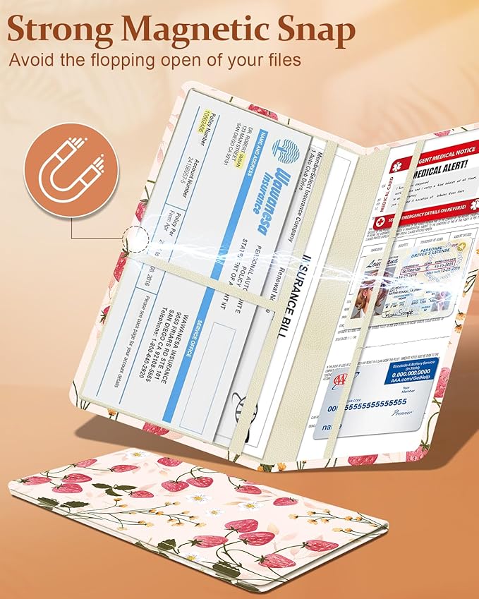 - Large Capacity Design: This car registration and insurance holder boasts a large capacity design,can store vehicle registration,insurance,driver's license,business cards,receipts,service records,emergency contact cards,etc