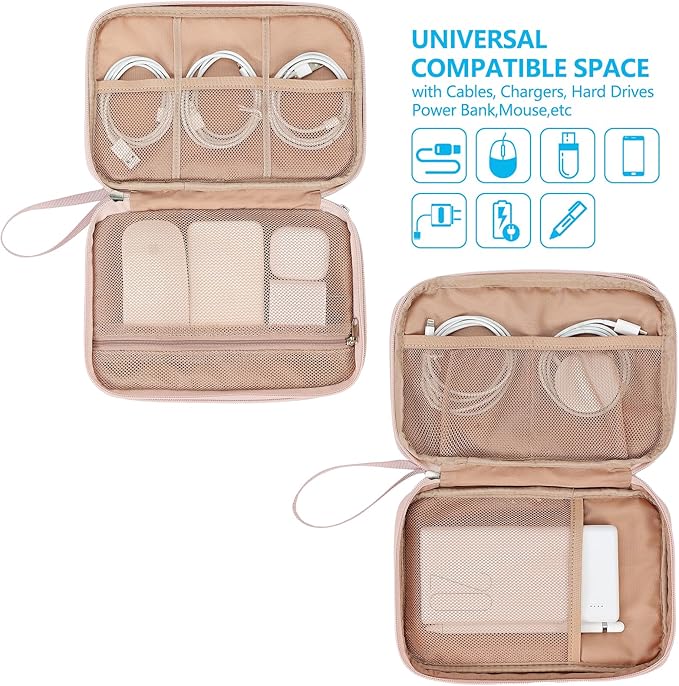 - NISHEL Travel Cord Organizer Case, Large, pink