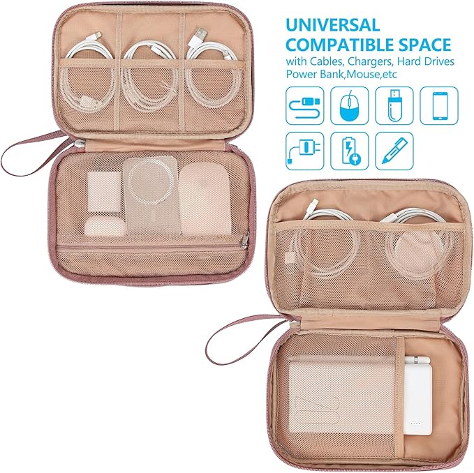 - NISHEL Travel Cord Organizer Case, Large, Rose-wood Pink