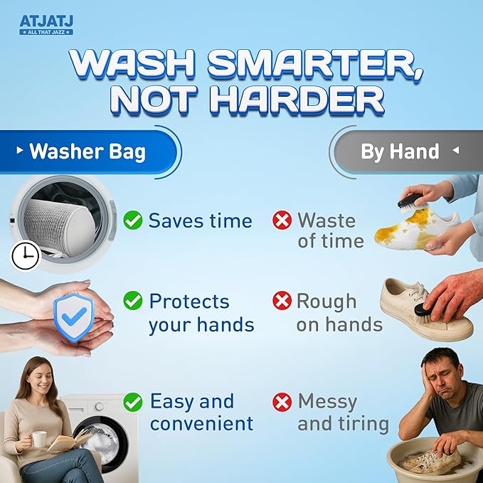 - ๐ใ ๐ช๐ฎ๐๐ต๐ฒ๐ฟ & ๐๐ฟ๐๐ฒ๐ฟ ๐ฆ๐ฎ๐ณ๐ฒ ใ: Safe to use in both front loading washers and dryers. Just place your shoes in the bag, zip it up and enjoy hands-free, hassle-free cleaning