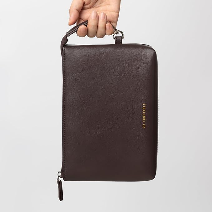 Comfyable Electronic Organizer Travel Case, Cord Storage Bag for Tech Accessories, Water-resistant Cable Organizer, Premium Leather Pouch for Charger, Phone, Cable, Mouse, Power Bank, Chocolate