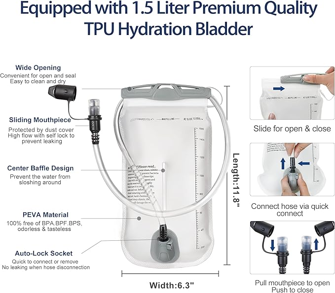 - Contain Water Bladder: Semsty water vest for running with 1.5L water reservoir. The bladder is BPA-free and anti-leak guaranteed. Stay hydrated in any time without taking an extra water bottle. Convenient and frees up your hands;If you have any problems, please reach out to us, we will reply within 24hrs. (We provide replacement services for quality problems within 1 year and lifetime customer service)