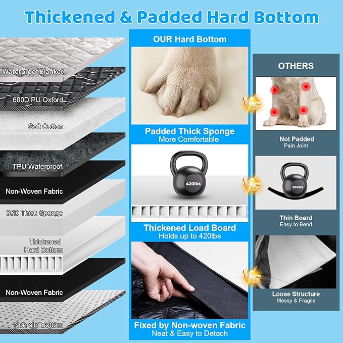 - Material : Heavy Duty Oxford Cloth, Thick Load-bearing Plate, Soft Removable Blanket