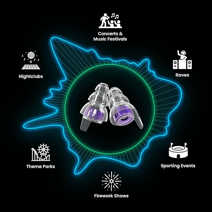 Eargasm High Fidelity Hyperviolet Purple Earplugs - Noise Reducing Ear-Plugs for Hearing Protection at Concerts, Music Festivals, Loud Environments, Live Events, Sporting Events