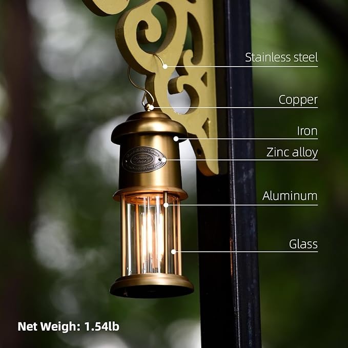 - 【All-metal & Electroplated Brushing Process】 Retro camping lantern is crafted entirely from metal. LED lantern surface features an electroplated brushing process, resulting in a smooth and glossy finish that resists stains while offering excellent rust resistance, wear resistance and long-lasting durability.