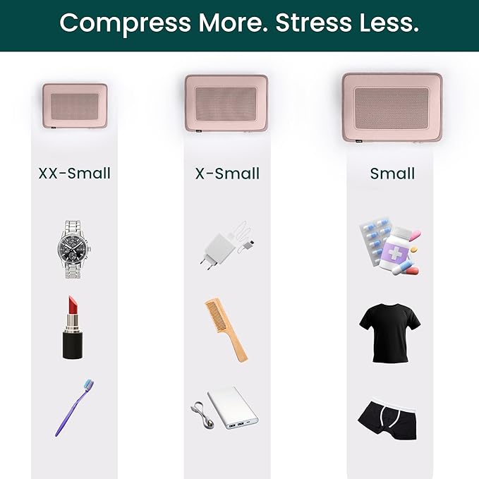 - Versatile 6-Piece Set for Any Trip: Includes an XXS, XS, S, M, L and XL cubes to fit all your travel essentials. Ideal for carry-on suitcases, backpacks, and checked luggage. Keep clothes, shoes, and accessories neatly separated.