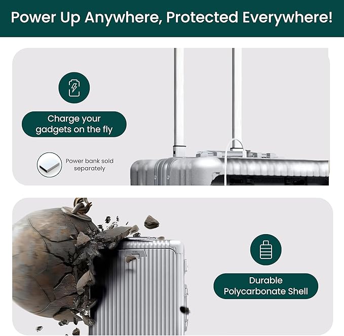 - Strong & Lightweight: Built with a reinforced aluminum frame and impact-resistant polycarbonate shell, this lightweight 8.8 lb. zipperless carry-on is ultra-durable. Dual TSA-approved locks provide extra security, keeping your belongings safe during travel.