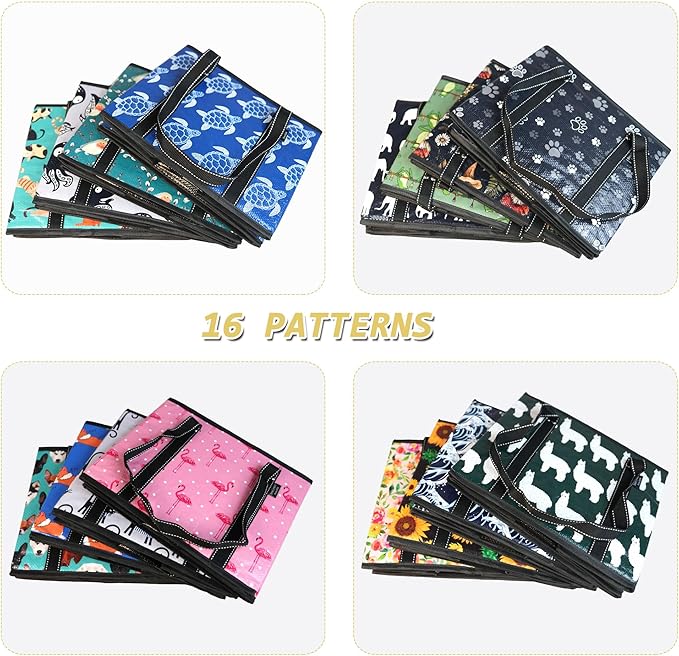 • 16 Stylish Prints | All-in-One Organizer: Ideal as large shopping bags for groceries, market or picnic supplies, they serve as reusable gifts for women. Features cute patterns on sturdy cloth fabric. The supported bottom provides box-like stability​​, standing securely in carts or car trunks. Ideal as storage organizers for kitchen, travel, pool, beach, or packing bulky items.