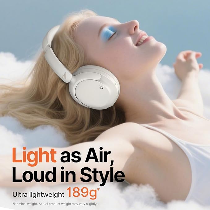 - Featherlight Comfort, Just 189g*: Enjoy next-level comfort with Vokalen Hyper GO Bluetooth over-ear headphones, 20 % lighter than typical ANC models. Soft earpads and an adjustable headband ensure a perfect fit for work, study, or travel. (*Nominal weight. Actual product weight may vary slightly.)