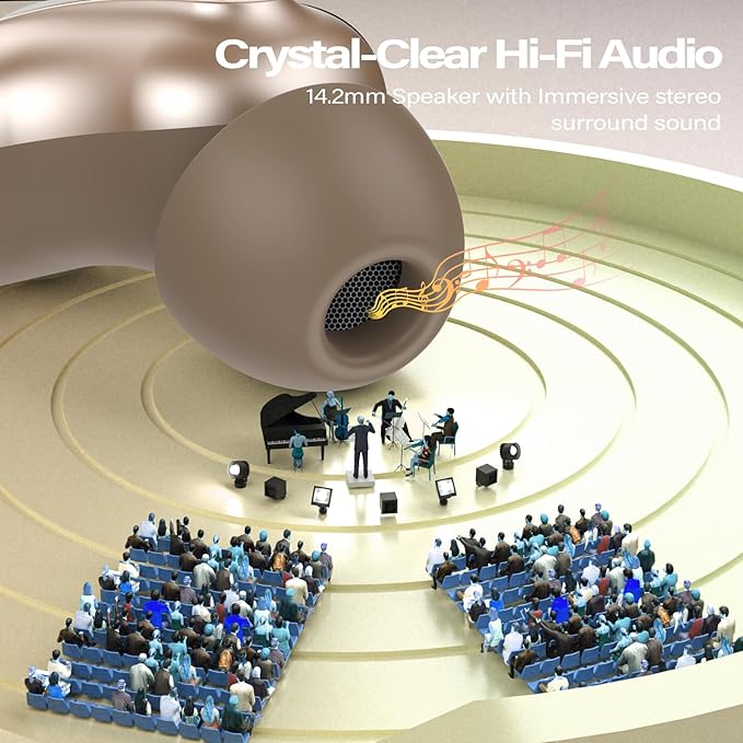 - Bluetooth 5.4 with Instant Auto-Pairing:Featuring the latest Bluetooth 5.4 chipset, the Bluetooth D20 Wireless headphones offers ultra-stable, low-latency connections. Enjoy instant one-step pairing—just open the case and the earbuds automatically connect to your last device. With strong anti-interference capabilities and a wireless range of up to 15 meters, you can move freely around your home or relax in bed without losing audio quality.