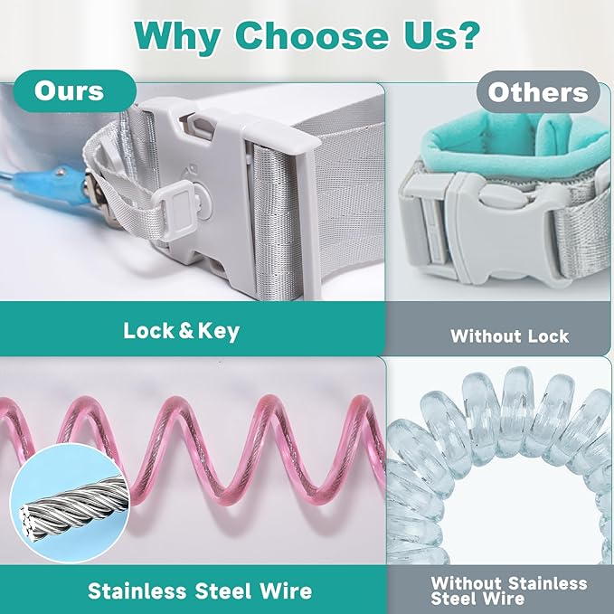- Key lock Design: Child safety is of utmost importance. The lock buckle design of the toddler leash is very secure, and only an adult's key can open it. This effectively prevents children from opening it themselves, thus significantly improving safety.